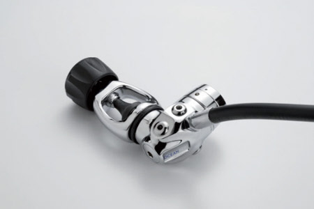 Die leistungsstarke 1. Stufe SL35TX Atemregler zu den Ocean Reef Vollgesichtsmasken verfügt über eine balancierte Membran mit einer Antifrostausrüstung. Der Mitteldruck lässt sich einstellen. Das Bronzegehäuse ist verchromt und der Kolben besteht aus Edelstahl mit Teflonsitz und Edelstahlfedern.